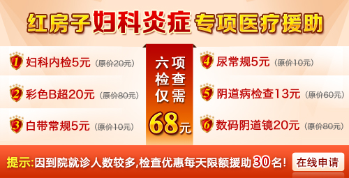 温馨提示:为提倡患有盆腔炎的女性积极接受正规治疗,医院经研究决定:凡通过网络预约的女性,不仅可以享受68元妇科检查套餐优惠,还可申请1000元医疗补贴,每日限额援助30名!【详情可咨询在线专家,如果您还有其他疑问,欢迎点击在线咨询杭州红房子妇科医院专家,预约挂专家号,妇保专家坐诊红房子,同时还有其他知名妇科专家,让患者们有了更多的选择。】